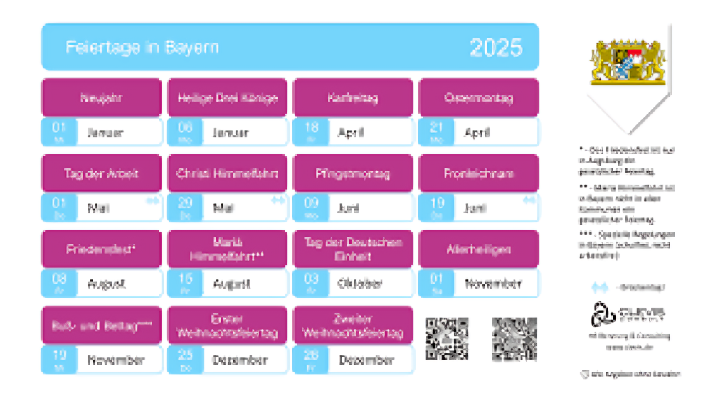 Kalender 2025 Bayern kostenlos: Ferien-Übersicht, Feiertage, PDF-Vorlagen | www.happycolorz.de